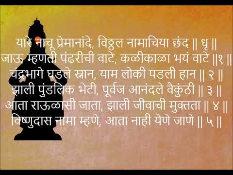 यारे नाचू प्रेमानांदे। विठ्ठल नामाचिया छंद ॥१॥